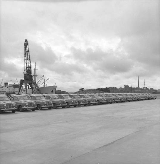Fartyg M/S KRISTINA THORDÉN i Uddevalla hamn lastar bilar tillverkade på Saab-fabriken i Trollhättan