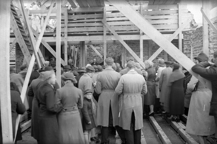 Enligt fotografens noteringar: "1939. 19. Kapellet Munkedal under byggnad. Kyrkoherde Lüsch håller högtidstalet".
