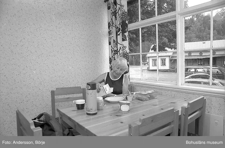Titel: "Frukostbestyr i köket, Eva Eriksson intar sin frukost"