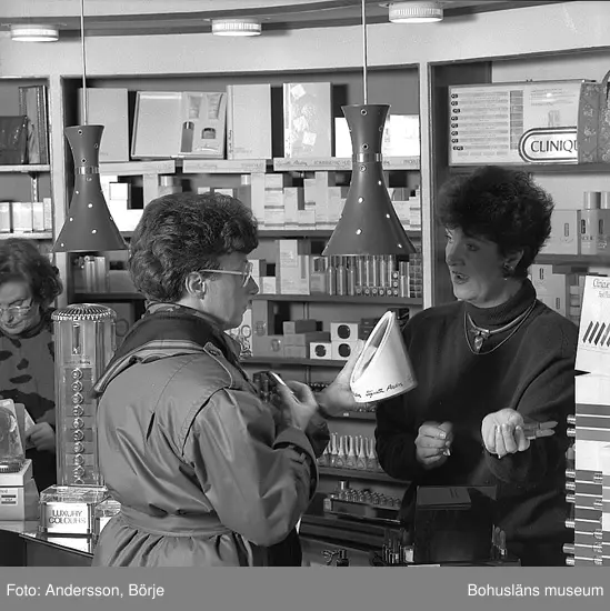 Langes Parfymeri, Uddevalla. Kund provar läppstift