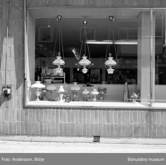 "Skyltfönster längst mot norr vid St. Hellevigsgatan, i skylten visas lampartiklar"