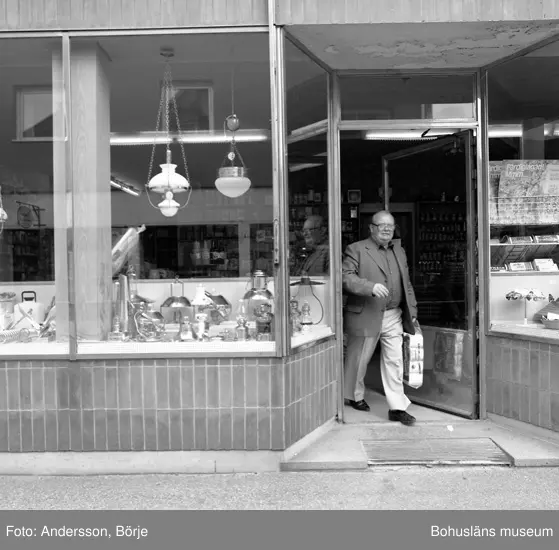 "Leif Nilsson lämnar affären med ett paket toalettpapper. Leif Nilsson har handlat hos Edwin Andreassons sedan en längre tid".