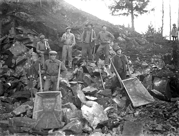 Vägbygge i Foss socken. Mannen med slokhatten är Axel Fredriksson, Rosendal eller Robert F Johansson(född i Foss).