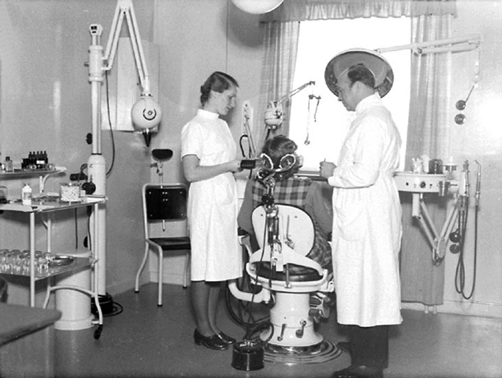 Enligt noteringar: "Tandläkare Gösta Rasmusson i sin praktik på Lilla Foss.
