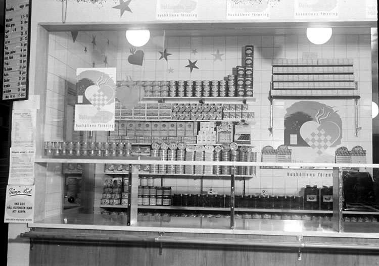Enligt noteringar: "Skyltning i Konsums butik i stationssamhället." (BJ)