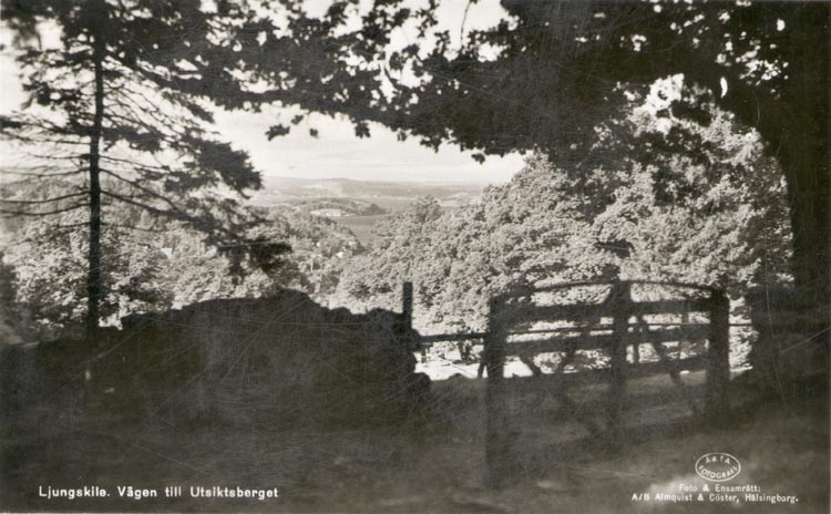 Tryckt text på kortet: "Ljungskile. Vägen till Utsiktsberget".