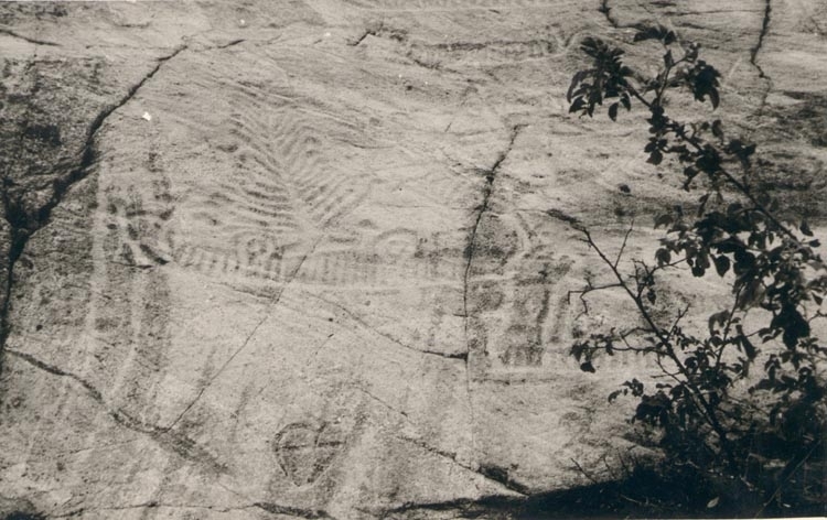 Noterat på kortet: "Hällristning vid Lökeberg, Tungenäset".