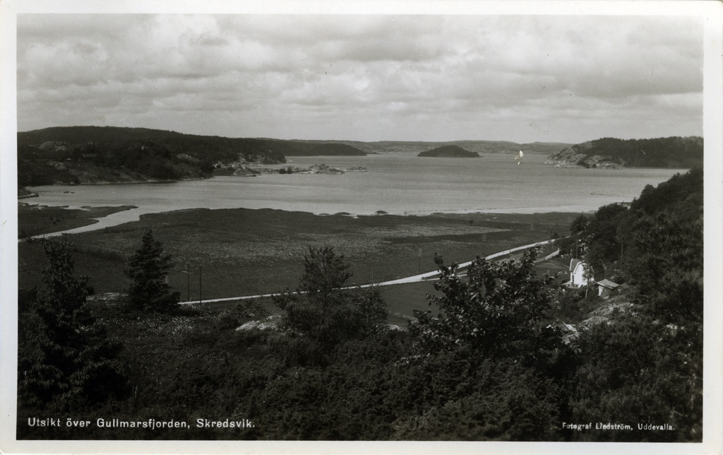 Text på kortet: "Utsikt över Gullmarsfjorden, Skredsvik".
