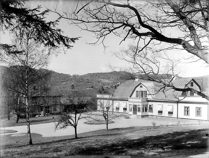 Enligt noteringar: "Munkedals herrgård från parken. Mot fonden bostadsområdet Lycke nedre." (BJ)