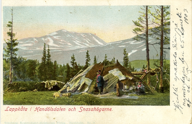 Notering på kortet: Lappkåta i Handölsdalen och Snasahögarna.