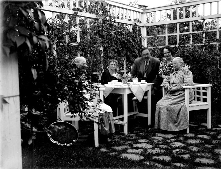 Kaffestund på Helgonabacken, Uddevalla. "Moster, Faster, 1936."