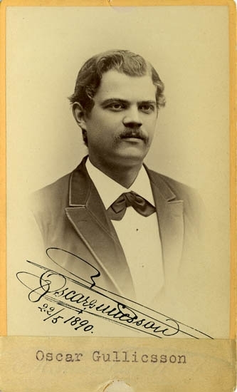 Text på kortets baksida: "Oscar Gullicsson 22/5 1890. Tidningsredaktör i Uddevalla för tid, Bohusläns Allehanda".
