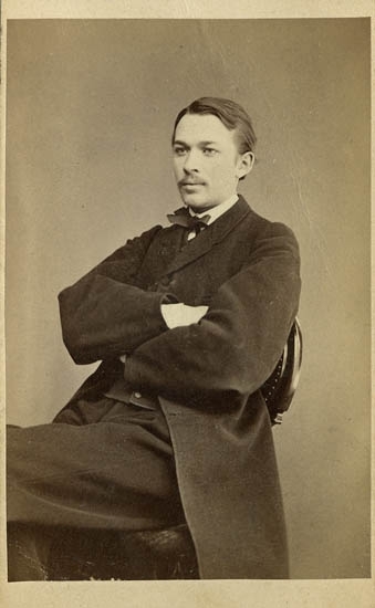 Text på kortets baksida: "Bokhållaren Gustaf Michael Hegardt, f. 1846 d. 1875. Gift med Anna Hilda Christina Carlström, f. 1849".