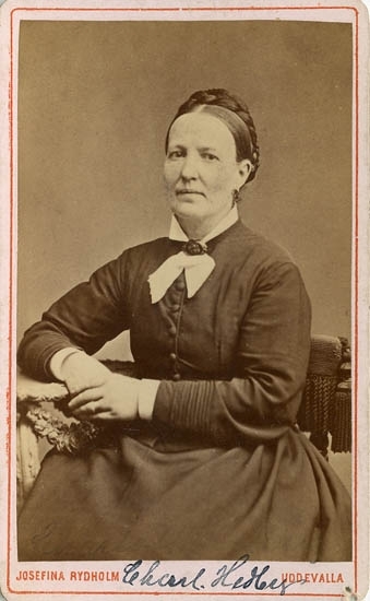Text på kortets baksida: "Fru Charlotta Hedberg, f. Widegren".