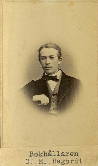 Text på kortets baksida: "Bokhållaren Gustaf Michael Hegardt, f. 1846 d. 1875. Gift med Anna Hilda Christina Carlström, f. 1849".