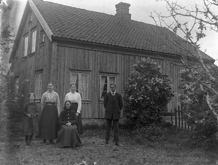 Enligt noteringar: "Gruppfoto vid husknuten"