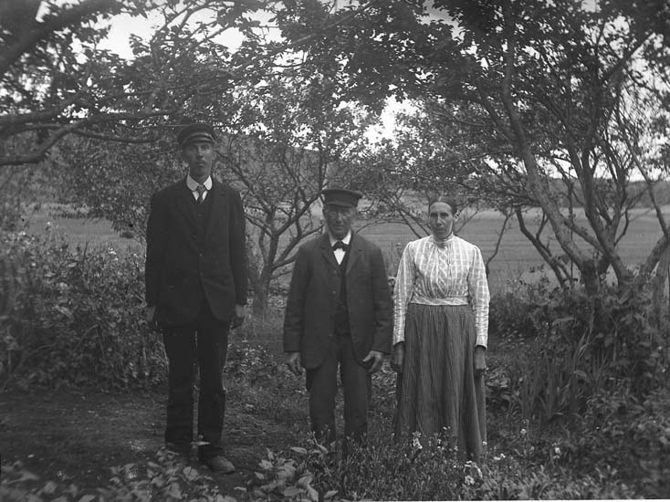 Enligt notering: "Tre vuxna uppställda framför fotografen".