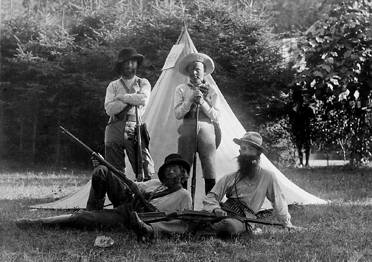 Vid genomgång av div. kuvert och portföljer fann jag dessa fotografier, som kanske kan vara av intresse för Museets porträtt-samling. PÅ baksidan av dem har min make identifierat en del av de avkonterfejade, som på den tiden vistades i Gustafsberg. Damernas klädedräkter med helt ansiktsflor och handskar, pojkarnas 2-hjulingar samt de unga herrarnas pampiga skägg borde kunna roa även nutida besökare. Dessutom en del fotos från Marstrand, Lysekil, Lyckorna samt några siluetter klippta i Gustafsberg.