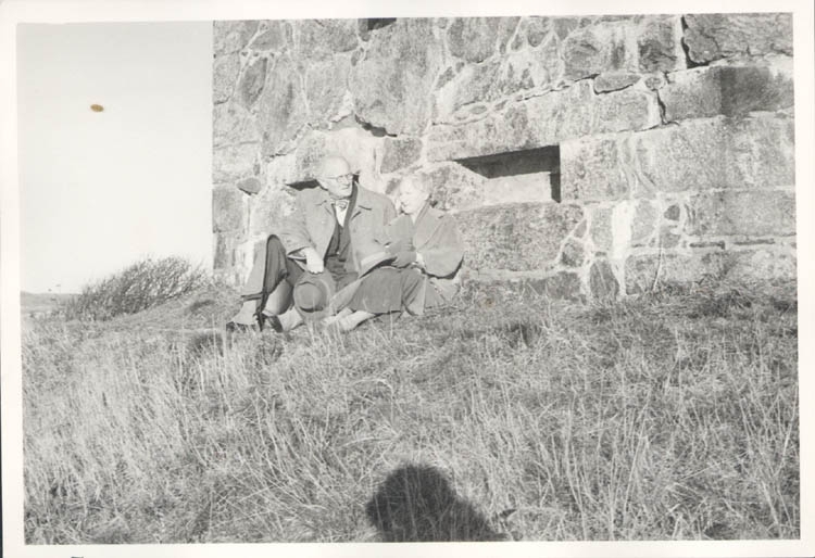 Noterat på kortet: "Marstrand. Far och mor vid"Smedjan." Samma plats som ett kort på dem tagits i förlovningstiden. 4.11.1961."