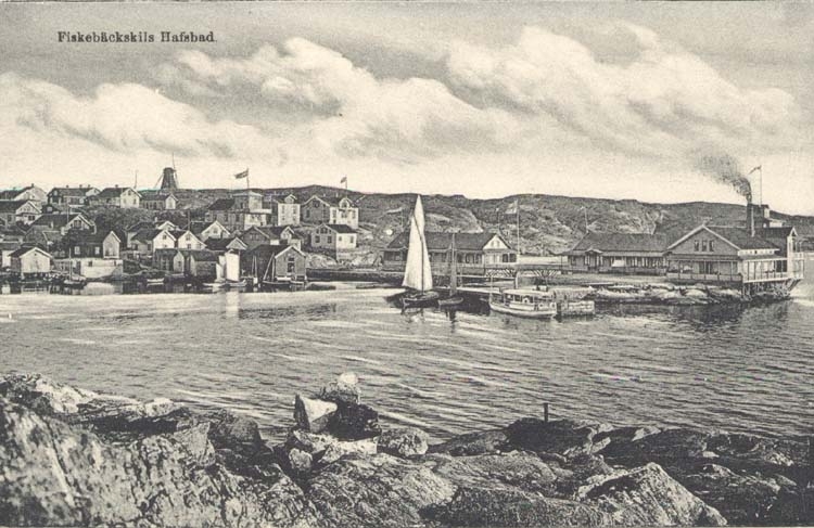 Tryckt text på kortet: "Fiskebäckskils Hafsbad."