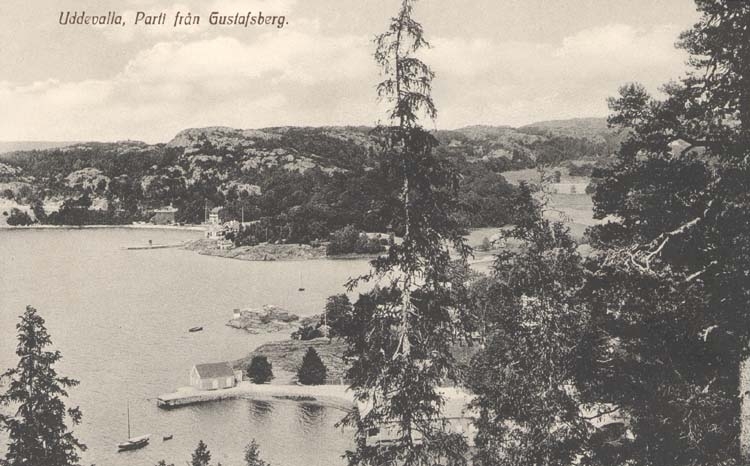 Tryckt text på kortet: "Uddevalla. Parti från Gustafsberg."