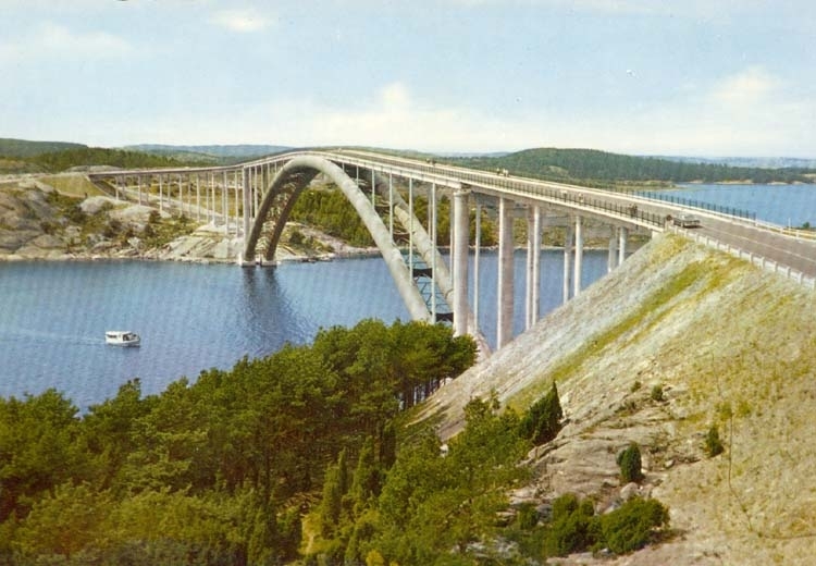 Tryckt text på kortet: "Nya Tjörn och Orustleden. Bron över Askeröfjorden."
