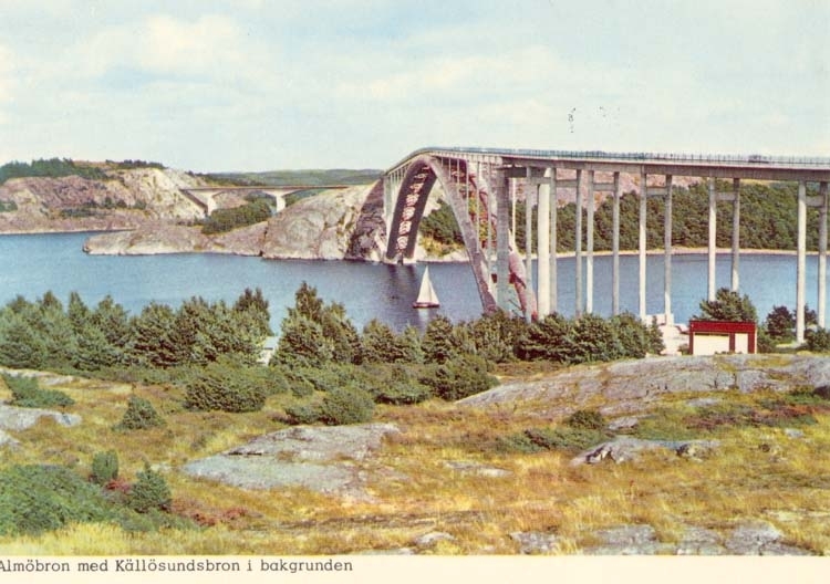Tryckt text på kortet: "Almöbron med Källösundsbron i bakgrunden."