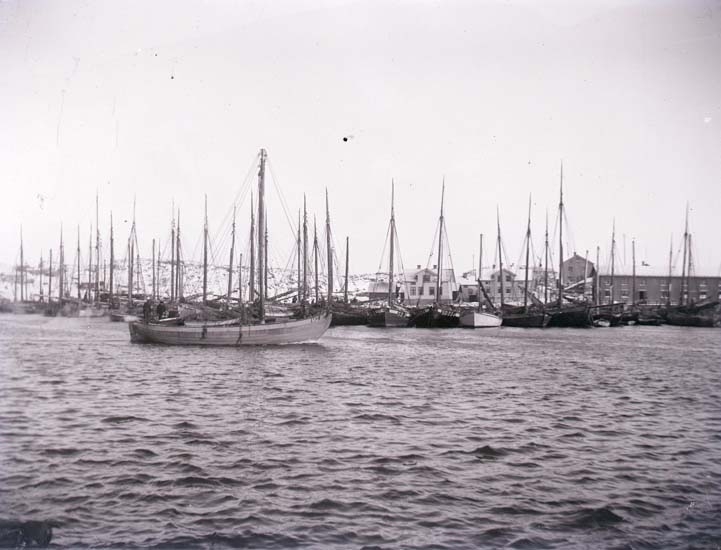 Enligt text som medföljde bilden: "Marstrand, sillbåtar, vintersillfiske."