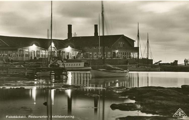 Fiskebäckskil. Restauranten i kvällsbelysning.
