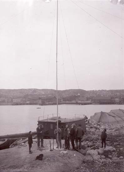 Enligt text som medföljde bilden: "Lysekil, Båtkranen upsättes Okt. 08"