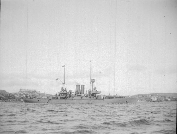 Enligt text som medföljde bilden. "Lysekil. Pansarbåten Oden, tagen fr. sidan i båt.