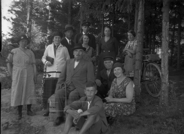 Enligt notering: "En gruppbild i skogen".