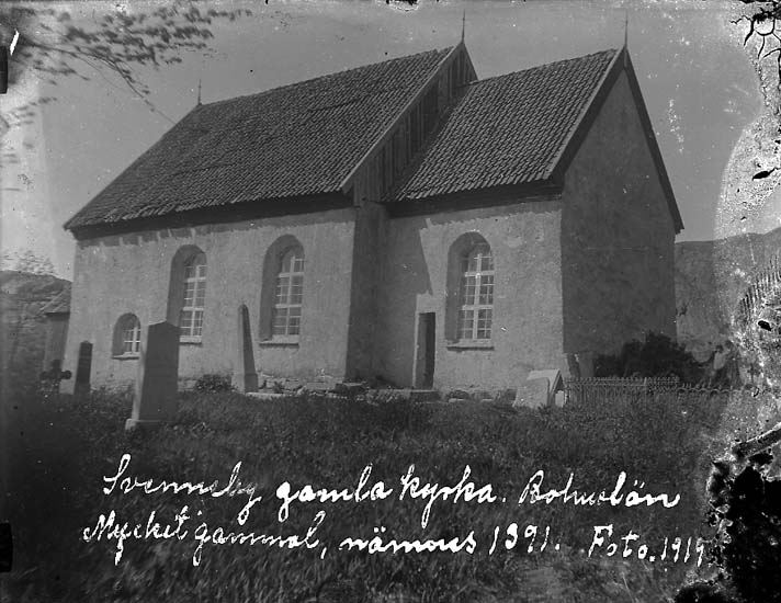 Enligt notering: "Svenneby gamla kyrka. Bohuslän. Mycket gammal, nämns 1391.. Foto 1919".