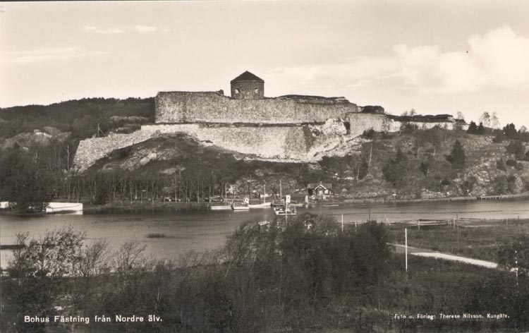 Tryckt text på kortet: "Bohus Fästning från Nordre älv".
