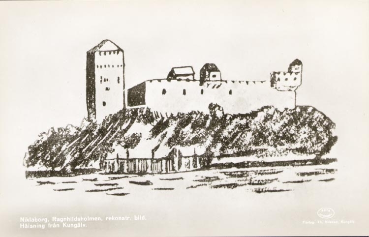 Tryckt text på kortet: "Niklaborg, Ragnhildsholmen, rekonstr. bild".