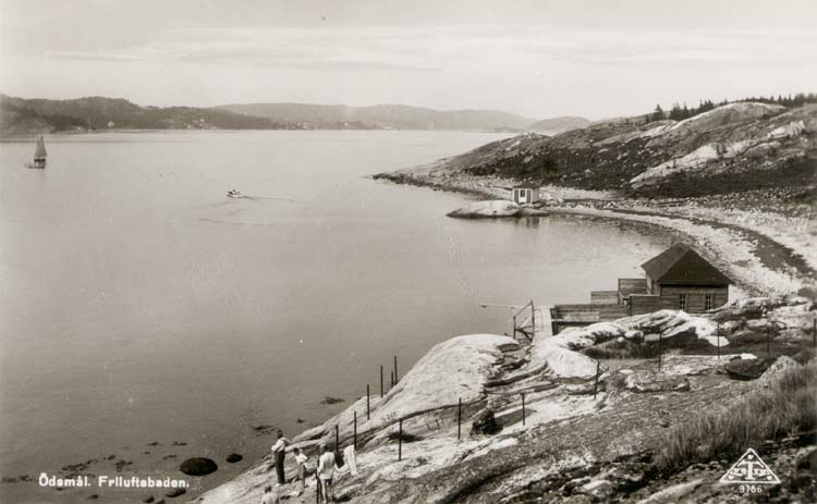 Tryckt text på kortet: "Ödsmål. Friluftsbaden."