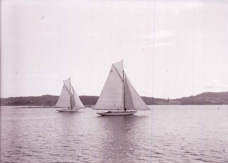 Enligt text som medföljde bilden: "Segelbåtarna Nippon och Morgana vid Gustafsberg".