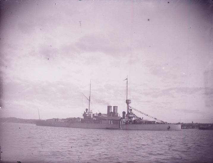 Enligt text som medföljde bilden: "Svenska pansarbåten "Thor" fr. sidan 1 sta. klass