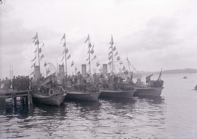 Enligt text som medföljde bilden: "Torpeder vid kajen. Aug. 11."
