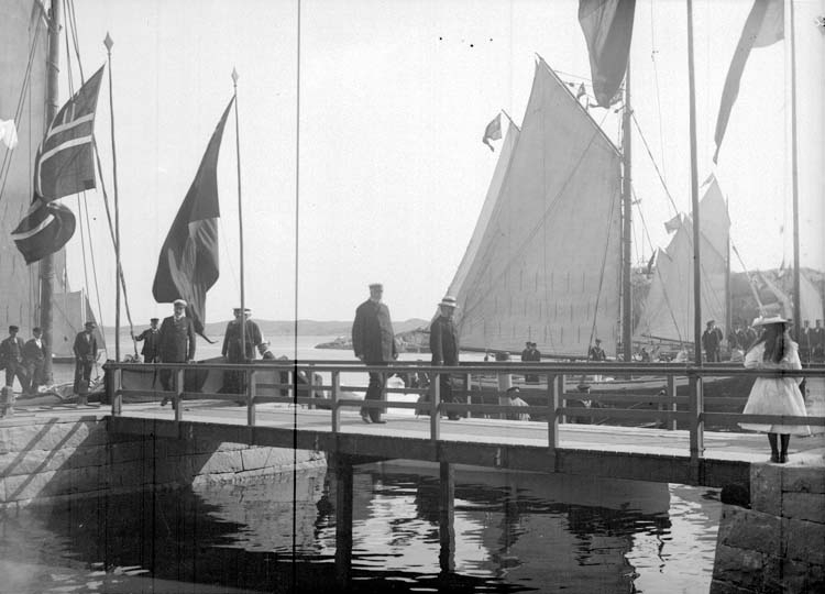 Enligt text som medföljde bilden: "Lysekil. H.M. Konungen och Doktor Wide 3/8 02."