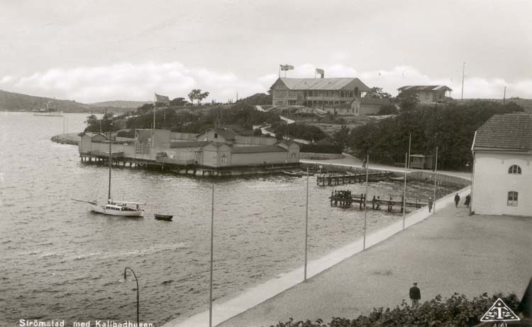 Tryckt text på kortet: "Strömstad med Kallbadhuset."