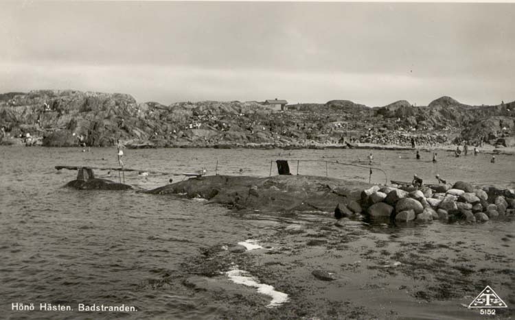 Tryckt text på kortet: "Hönö Hästen. Badstranden."