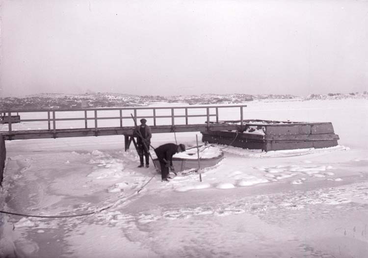 Enligt text som tillhörde bilden "Vid badhusbrygga sjöis febr/mars 1917".
