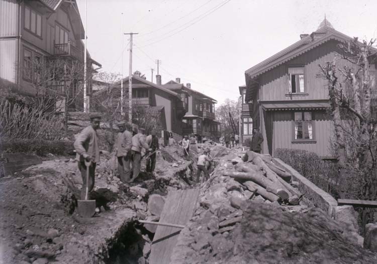 Enligt text som medföljde bilden: "Arbete på Rosviksgatan N.H? 1917/1918".