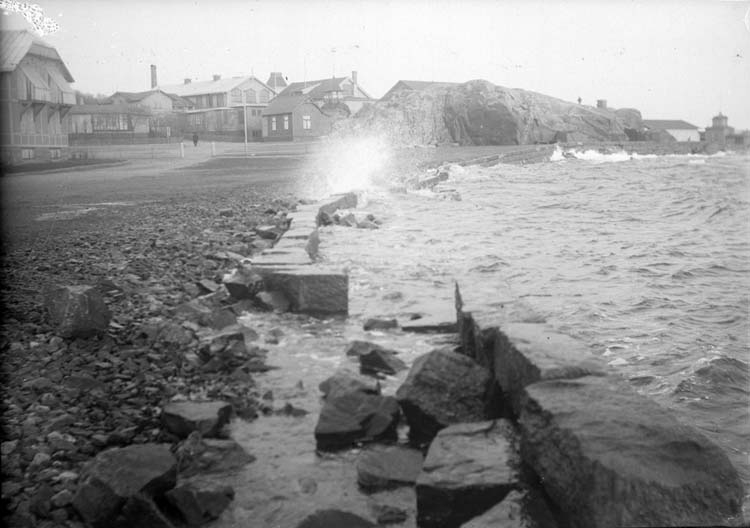 Enligt text som medföljde bilden: "Storm i högt vatten i Kyrkvik 5 nov. 11".