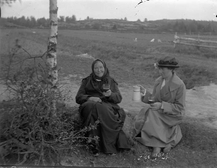 Enligt notering: "Två kvinnor, förfriskning i det fria. 1921".
