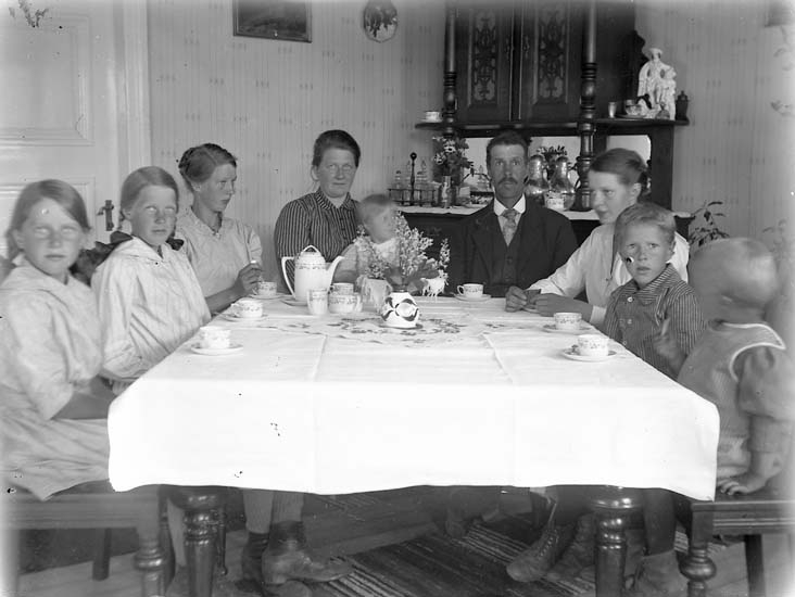Enligt notering: "Vuxna och barn vid kaffebordet".