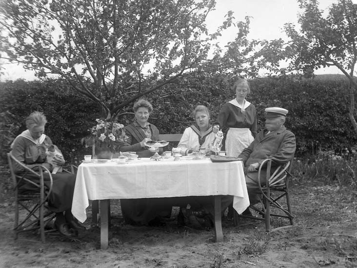 "Kaffet serveras i bersån. Skollärare Hammar Hög-Edsten med familj".