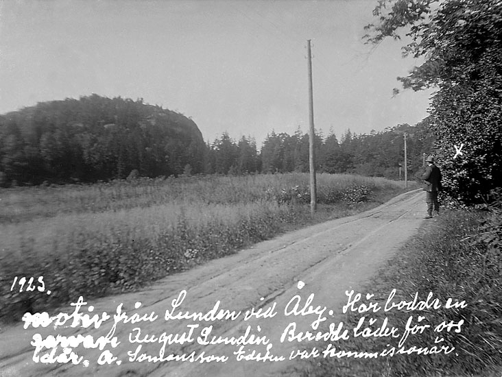 Johans text på fotot: "1923. Motiv från Lunden vid Åby. Här bodde en garvare