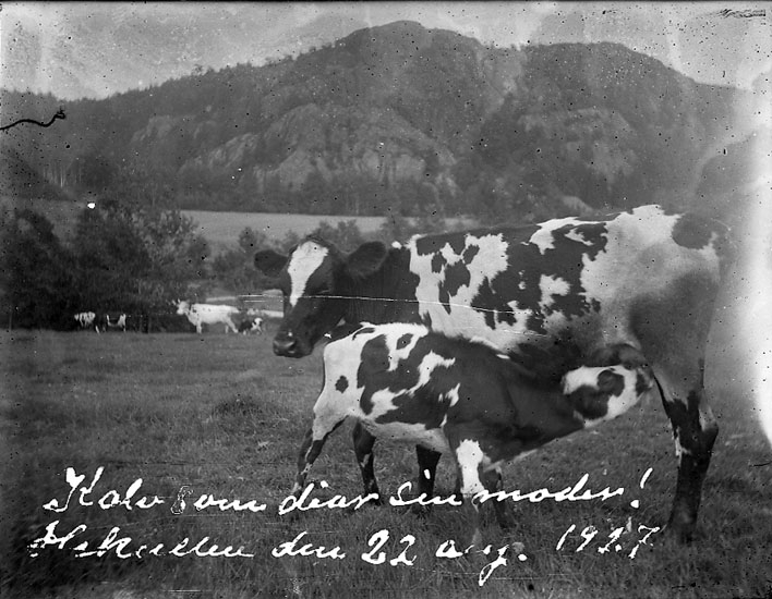 Enligt text på fotot: "Kalv som diar sin moder! Hekullen den 22 aug. 1927".